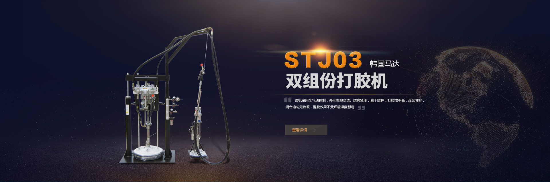 STJ06T型雙組份打膠機(jī)是我公司自行研制生產(chǎn)的一種全氣動(dòng)打膠機(jī)。這款設(shè)備是專門為中空玻璃打膠設(shè)計(jì)...